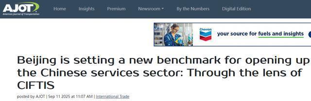 外媒同样对服贸会予以了高度关注。美国运输杂志(American Journal of Transportation)近日报道称,历经十三载发展,服贸会已从行业性展览升级为全球性开放平台,为国际服务贸易树立了新标杆。服贸会顺应服务贸易数字化、智能化、绿色化发展的新趋势,实现了历史性跨越,凭借高度的专业性和开放性,成长为真正国际化、开放化的平台。与此同时,中国一系列开创性政策成效显著,推动服务贸易开放、优化营商环境,将展会蓝图转化为市场现实。