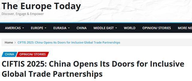今日欧洲网站(The Europe Today)13日的报道指出,服贸会展示了中国对包容、开放和前瞻性的服务贸易的承诺。中国持续扩大市场准入,为全球企业创造广阔机遇。