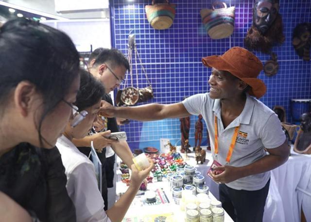 9月10日拍摄的乌干达展台。中国日报记者 邹红 摄